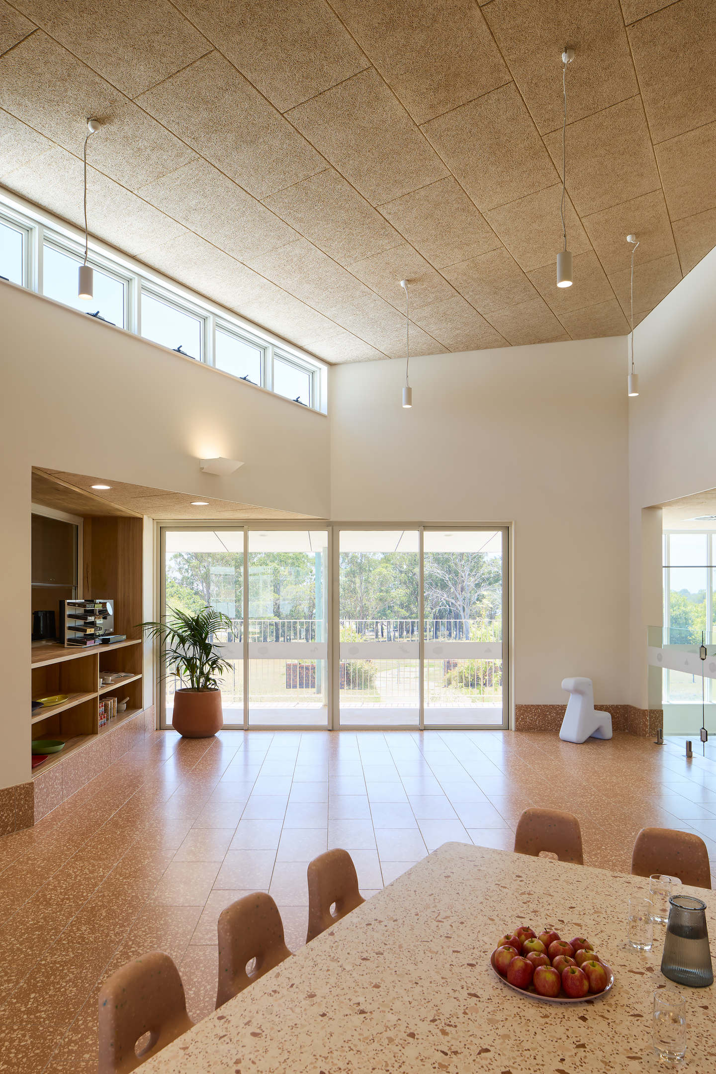 The ground floor features six rooms tailored for various age groups and activities, a staff area for planning and breaks, and a dining hall for communal meals. The commercial kitchen is equipped to prepare nutritious meals and snacks.