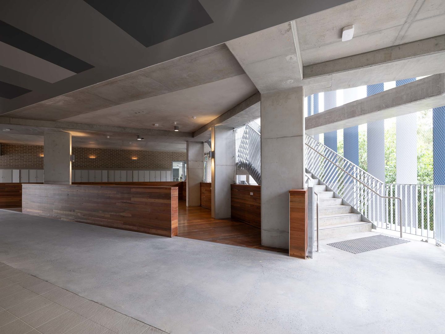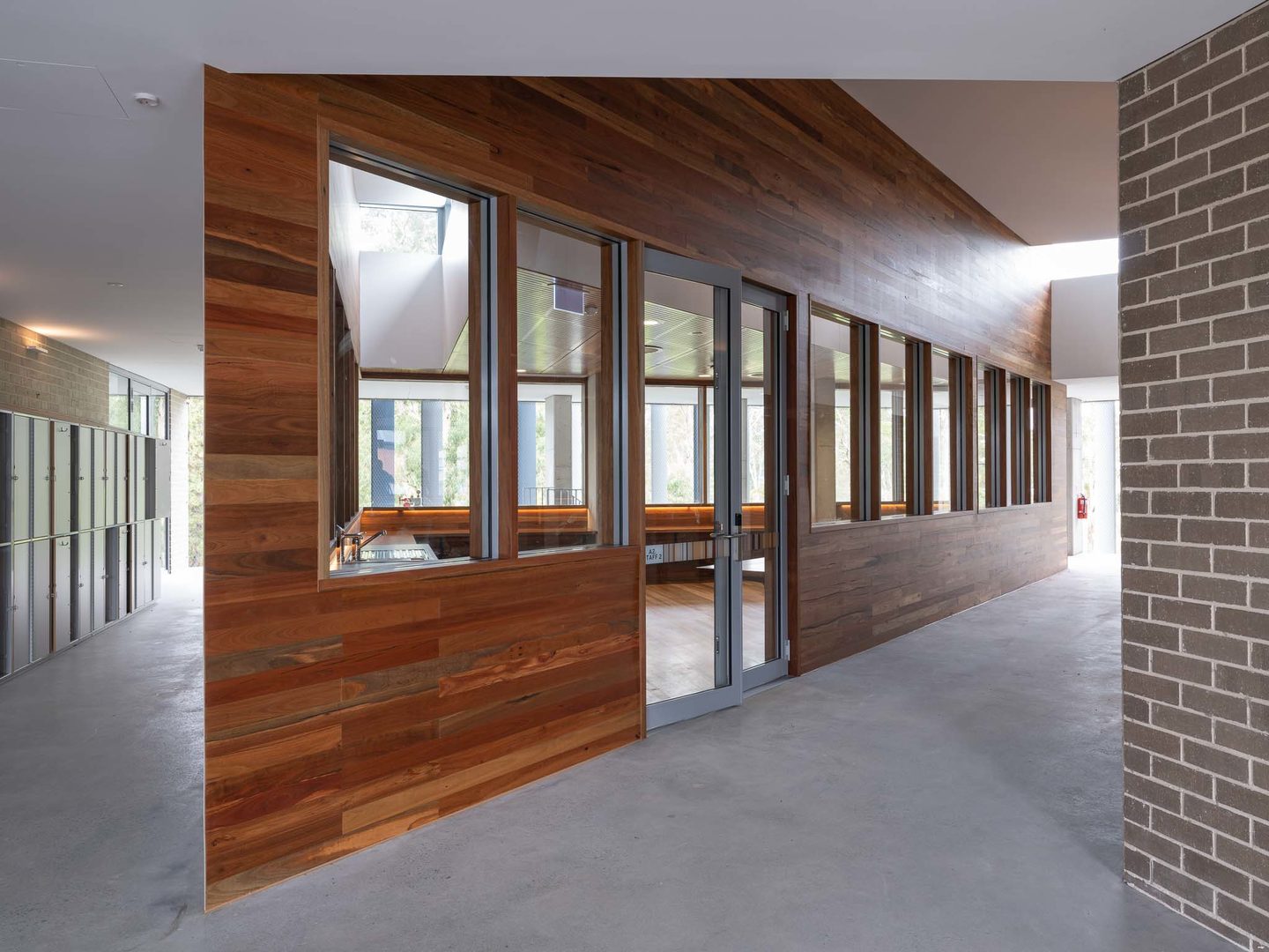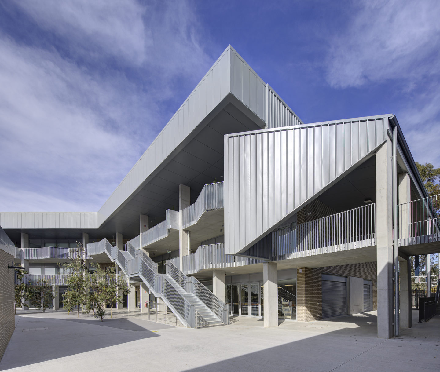 An adjoining single-storey pavilion houses a canteen, hospitality training facility, uniform shop, and a covered outdoor learning area (COLA). New landscaping and improvements to the south-eastern carpark support better access and usability across the campus.